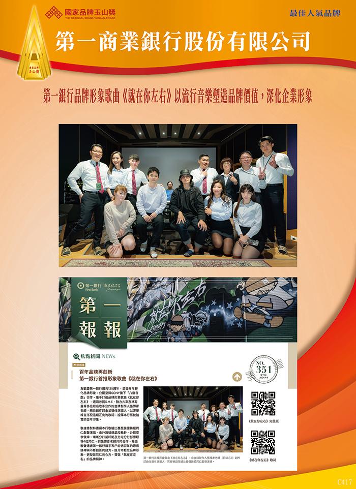 第一商業銀行股份有限公司 / 第一銀行品牌形象歌曲《就在你左右》以流行音樂塑造品牌價值,深化企業形象
