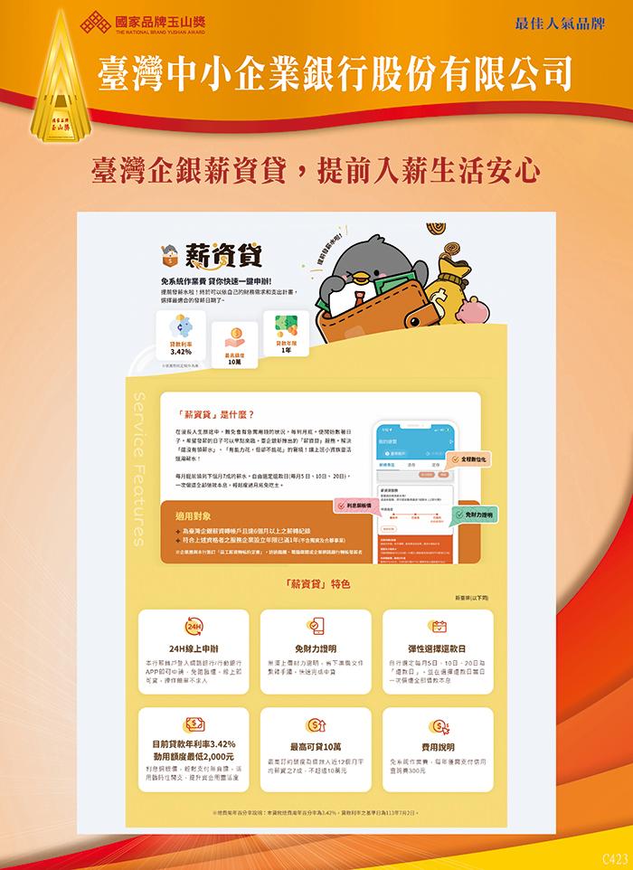 臺灣中小企業銀行股份有限公司 / 臺灣企銀薪資貸,提前入薪生活安心